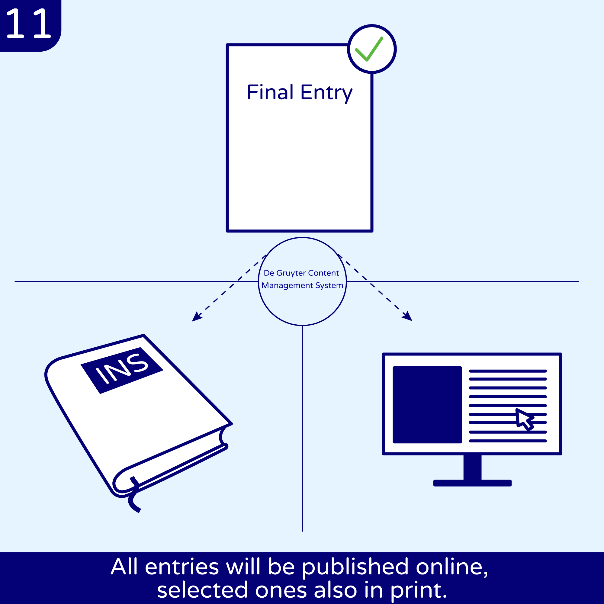 We understand that the process is structurally detailed but we think this necessary in order to guarantee optimal coverage and quality of content. This reference work will be a unique scholarly vade mecum and primary consultation resource for many years to come and it will reflect the distinction of its authors and its publisher.