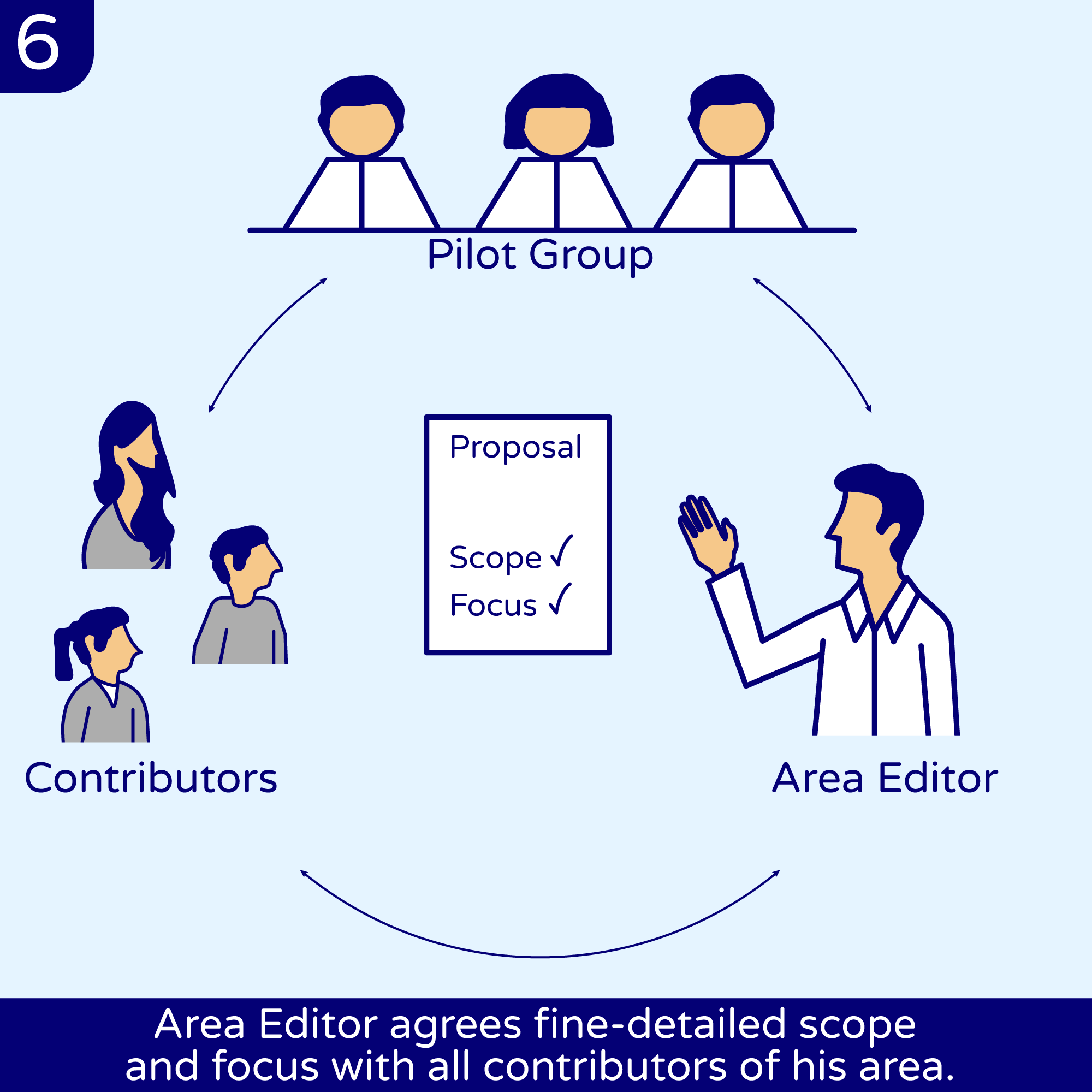 4) At this point the Subject Editors and the Pilot Group will begin detailed interaction with the contributor in order to agree the fine-detailed scope and focus of their contributions. The Project Stylesheet will be sent to contributors and a submission date agreed.