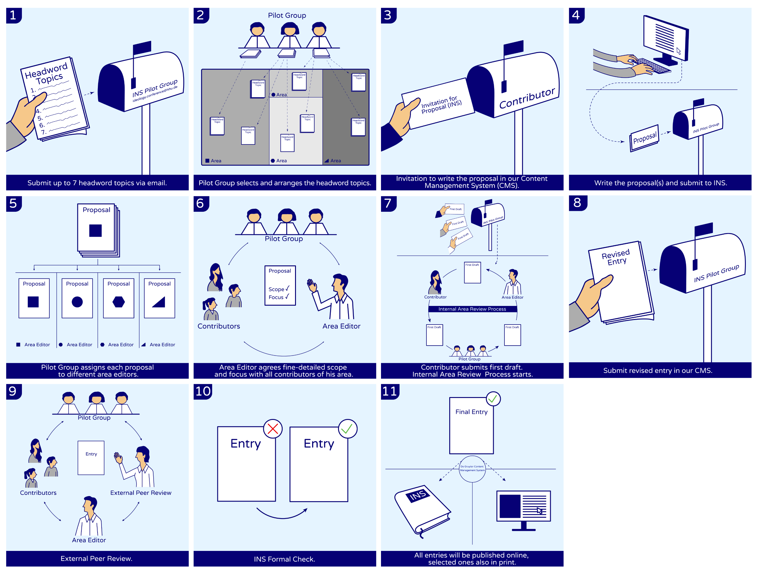 Our editorial pilot group will examine each headword suggestion and its relationship to the many other headword suggestions submitted by scholars. We will then contact the scholars who have submitted headword suggestions and invite them to submit more detailed proposals for the selected articles which will concentrate on the detailed focus and coverage of their submission.